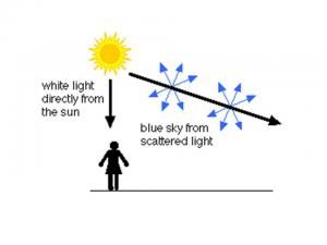 Langit yang kita pandang setiap hari itu mengandungi udara. Dan udara itu sendirinya mengandungi beberapa jenis molekul gas, serta beberapa lagi campuran habuk dan sebagainya. Cahaya matahari yang dipancarkan ke udara di langit akan mengena kepada molekul-molekul gas itu tadi dan seterusnya akan memantulkan cahayanya kepada beberapa arah.